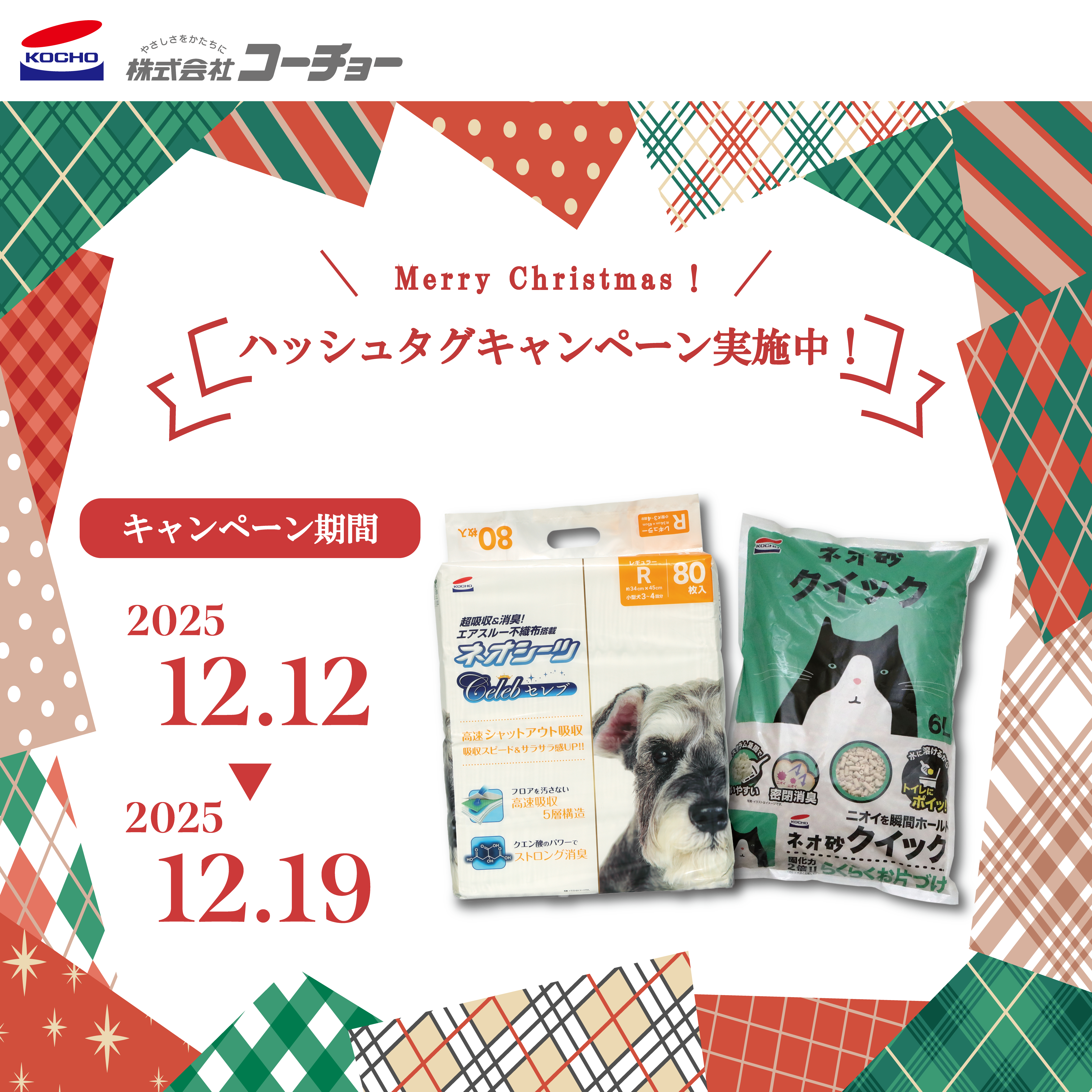 応募いただいた方の中から超吸収&消臭エアスルー不織布搭載「ネオシーツセレブ レギュラー80枚」または、ニオイを瞬間ホールド「ネオ砂 クイック6L」をそれぞれ5名様にプレゼントします。