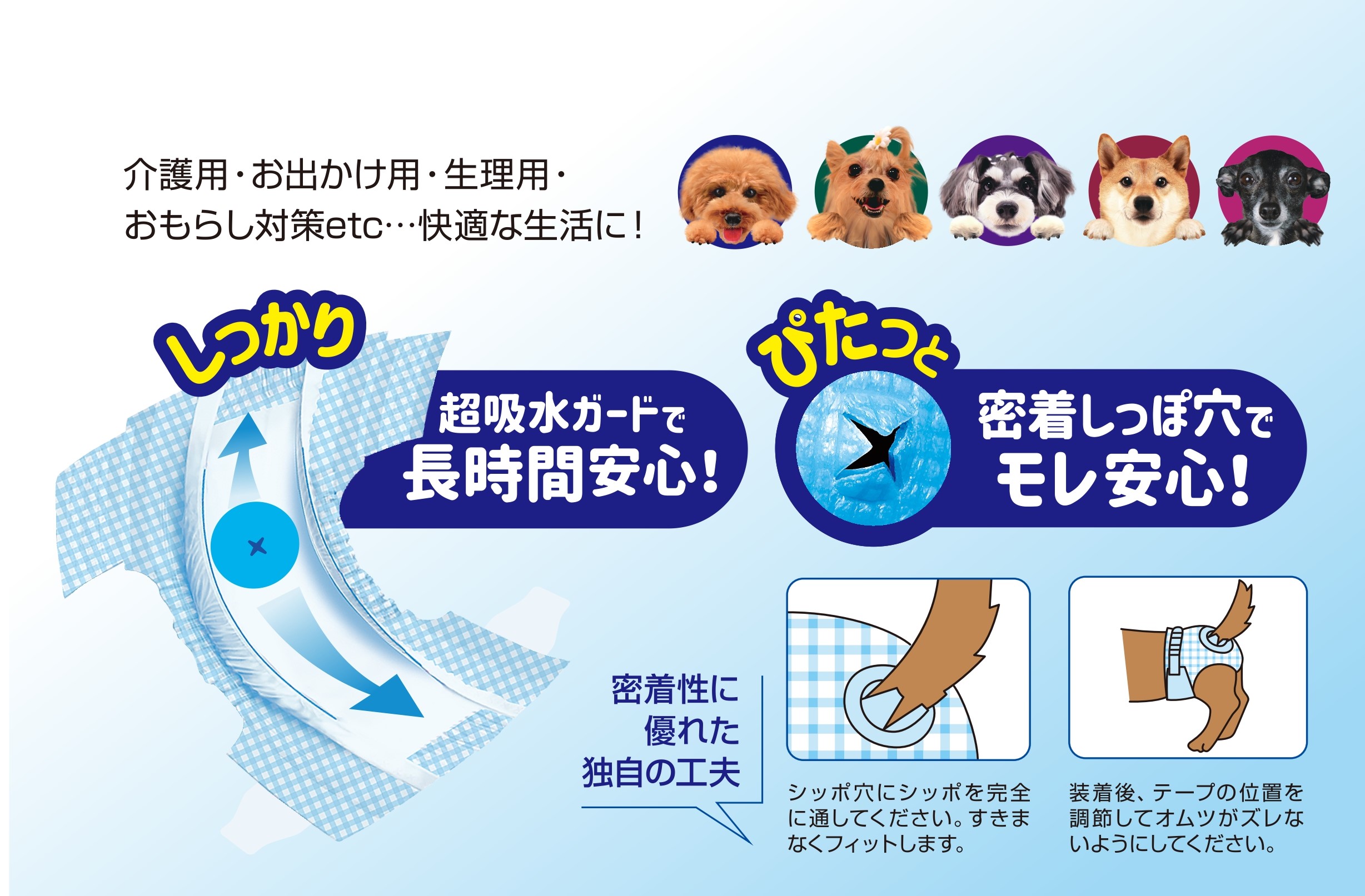 愛犬・愛猫の股ぐりにフィットするので、オシッコや軟便をしっかりガード。